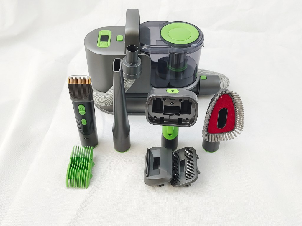 The SM220 Pet Vacuum Cleaner is a versatile grooming device combining powerful vacuuming and pet hair trimming in one system. Equipped with 3 suction modes and a detachable electric clipper, it’s ideal for at-home grooming while keeping your space hair-free. With its compact design and 1.5L dust capacity, it’s tailored for pet lovers seeking both functionality and quiet performance.